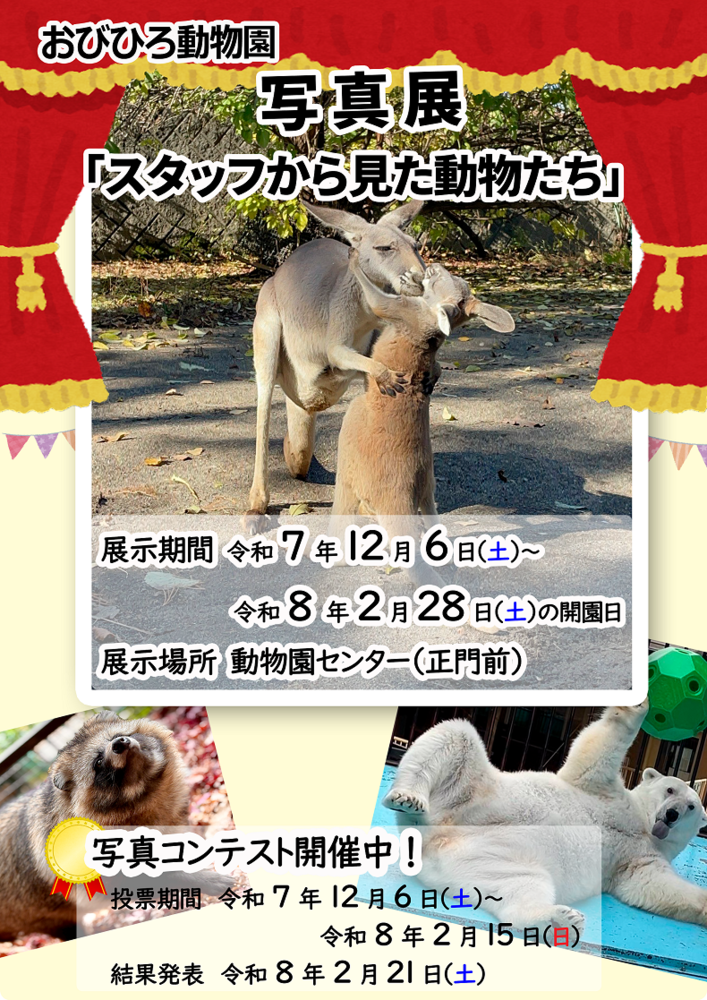おびひろ動物園冬季開園中、動物園職員が撮影した写真を展示する写真展を開催します。ぜひご来園ください。